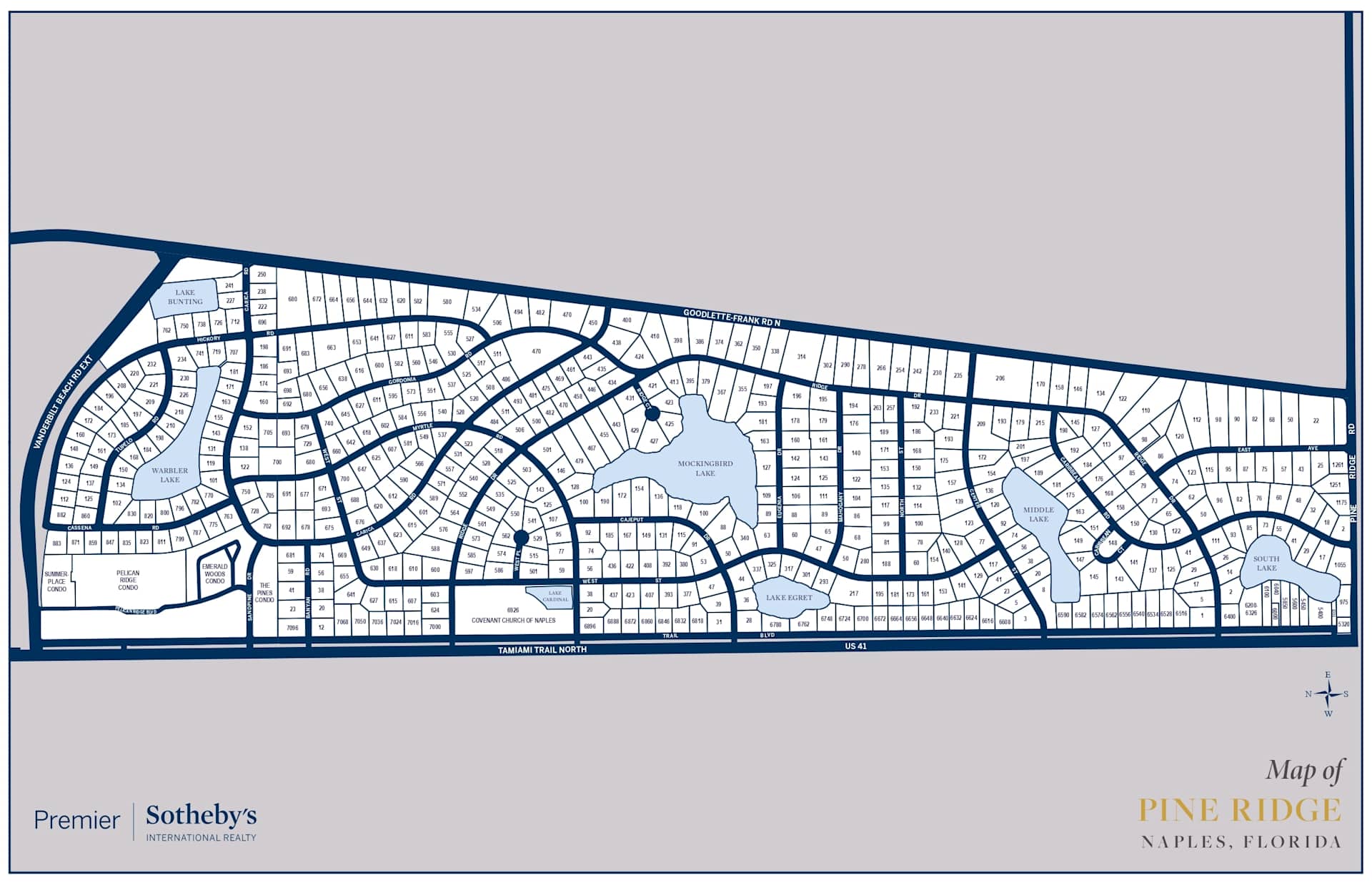 Residents of Pine Ridge Estates have a diverse array of dining, entertainment, and shopping options, thanks to its proximity to Waterside Shops and Mercato.